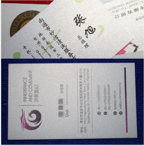 細(xì)節(jié)備注:如果您的名片墨地比較大建議選擇覆膜工藝